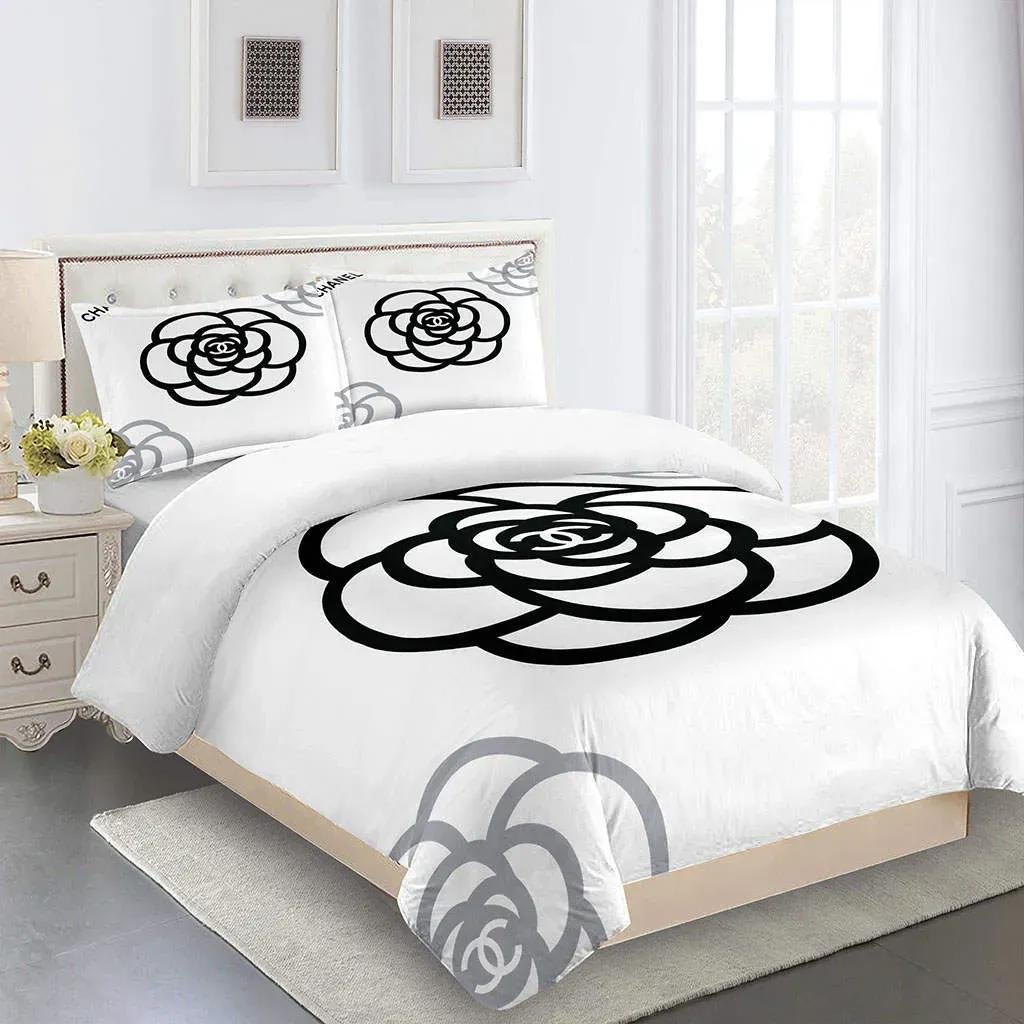 Chanel big flowers luxury brand premium bedding set for bedroom luxury bedspread duvet cover set with pillowcases home decoration Bedding Sets
